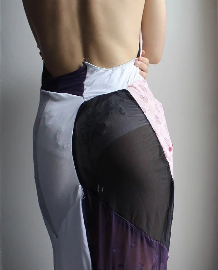 Created from pants donated by the community, this dress brings together the voices of women who have experienced assault, harassment, or catcalling. It challenges the harmful idea that a person’s clothing invites such behavior, asserting that no matter what you wear, you're never asking for it. This is my version of "power dressing"—a statement of strength and defiance.