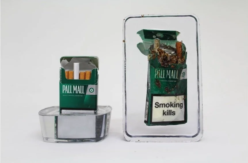 Inspired by Damien Hirst’s resin work, Real Advertisement explores the relationship between young people, smoking, addiction, and advertising.