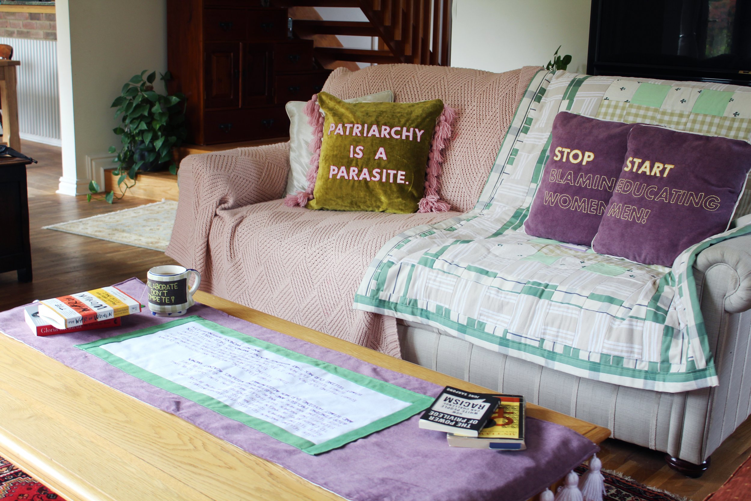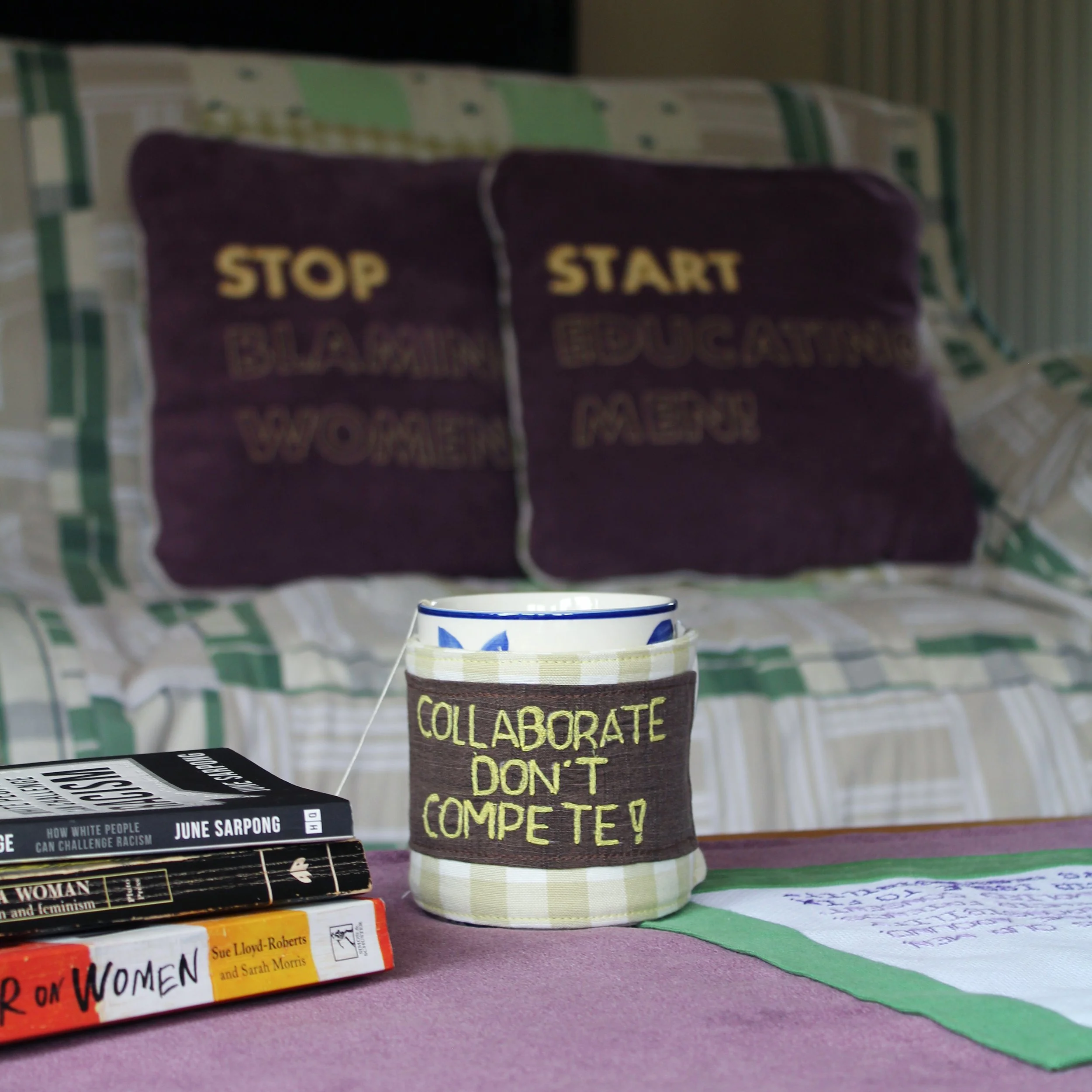The Radical Tea Room is an emblem of solidarity, collective care, and political protest – seeking to unify and empower our community with the power of stitch becoming a weapon in battle of inequality. By converting ‘decoration’ into factual statements that challenge the viewer, ‘uncomfortable’ conversations are brought to the foreground which simply can’t be overlooked, encouraging self-reflection and self- education alongside collective quilt making workshops and liberating conversations to bring the public together again, breaking down man-made taboos.