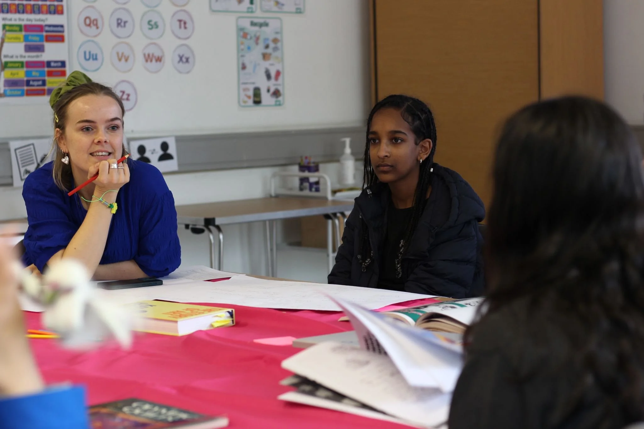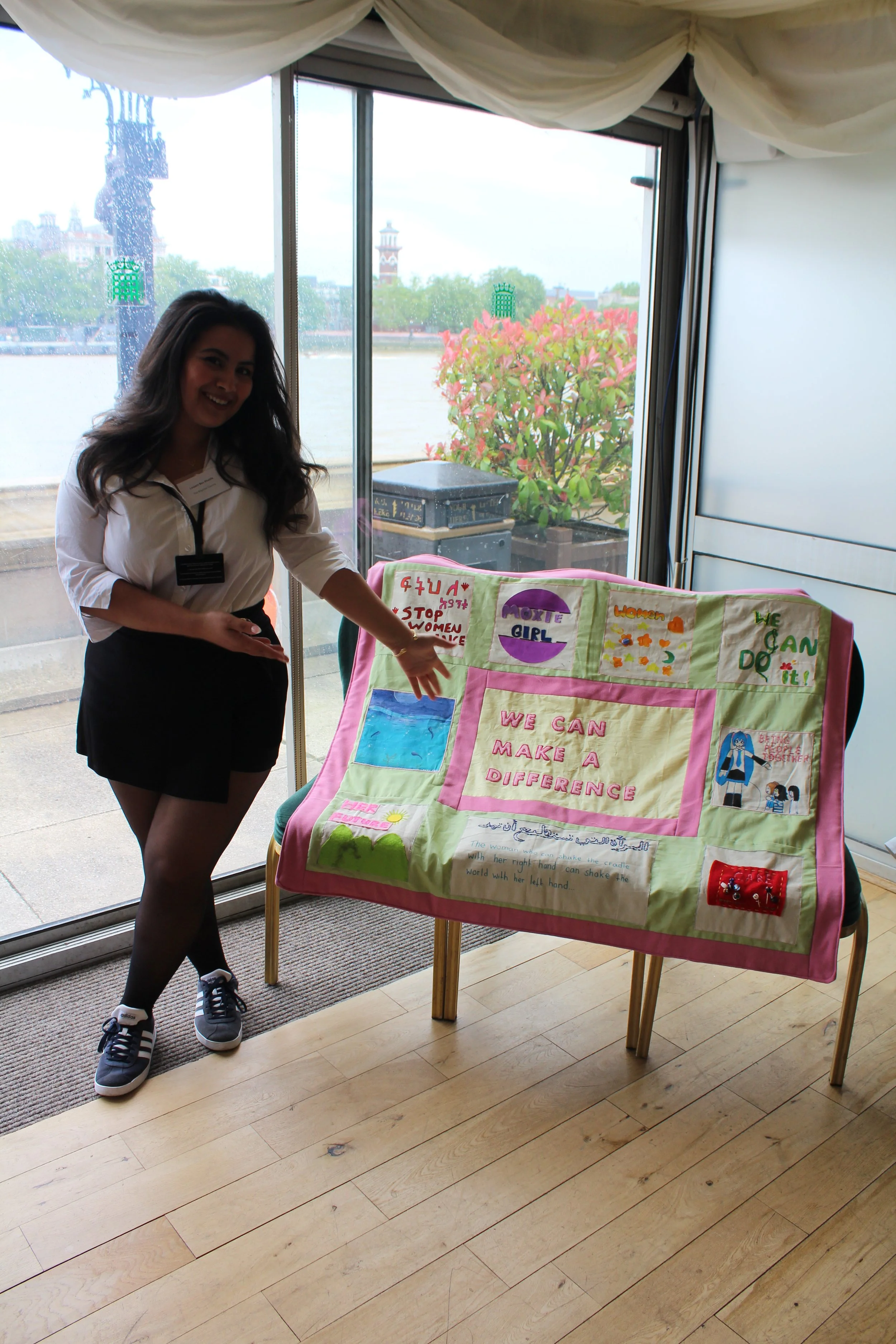 In collaboration with The Baytree Centre, I hosted my Radical Quilt Making Workshop, inspired by the banners of suffragettes. With 8 young girls and refugees, we created a quilt to explore the challenges they face in education and poverty. My role was to lead discussions, inspired by books, and support them in creating their individual patches and assembling the final piece. The completed quilt now hangs proudly in the centre's reception, welcoming members and reminding them of their resilience and the power of their community.